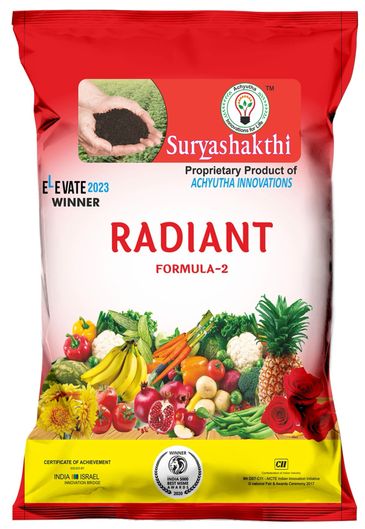 Dissolve 500gms of Radiant in 100 liters water / 1Kg Radiant in 200 liters of water, mix well and apply 2 liters per plant for 3 years and less old plant, 3 liters for 4 to 6 years and 4 liters for above 6 years old plant for fruit crops. Apply by forming a trench or a shallow pit with 2 liter volume at 1 and ½ a foot away from the plant trunk / stem for best results.